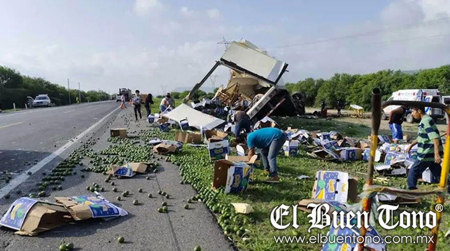 Mientras los equipos de emergencia trabajaban en el sitio, habitantes de la zona aprovecharon la situación para acercarse a la caja del tráiler y robar varias cajas de limones que transportaba el vehículo siniestrado.