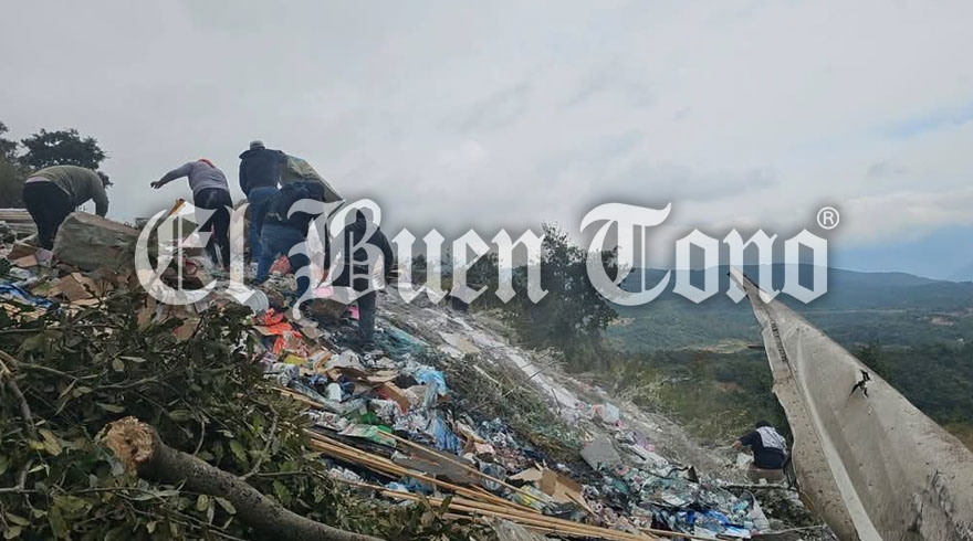 MALTRATA.- Un camión cargado con productos electrodomésticos y de abarrotes volcó y cayó un barranco, muriendo el chofer en el fatal accidente, lo que causó la movilización de grupos de emergencia de CAPUFE y de la Guardia Nacional, sobre el kilómetro 235, además pese a ello los rateros llegaron para llevarse todo, hoy por la tarde en la segunda rampa de emergencia, en la ruta Puebla-Veracruz.
