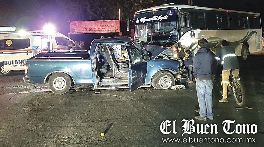 Amatlán.- Durante la noche de ayer, sobre la carretera federal Córdoba-Veracruz, se suscitó un choque entre un autobús y una camioneta, dejando como saldo 4 personas lesionadas y daños materiales valuados en varios miles de pesos. Los hechos se registraron a la altura de la desviación a Potrero, cuando una familia de comerciantes, la cual viajaba a bordo de una Ford F-150, con placas X-79-046, fue impactada por un autobús, marca Mercedes-Benz y con placas A-19672-X, el cual hizo corte de circulación.