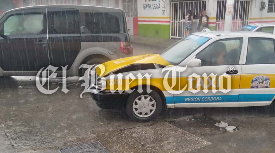 Córdoba.- La lluvia registrada esta tarde y la falta de precaución al manejar provocaron un choque entre una camioneta Honda y el taxi número CO-1474 en el crucero de la calle 19 y avenida 12. Durante este accidente, no hubo reporte de personas lesionadas, solo daños materiales y el cierre momentáneo de la circulación.