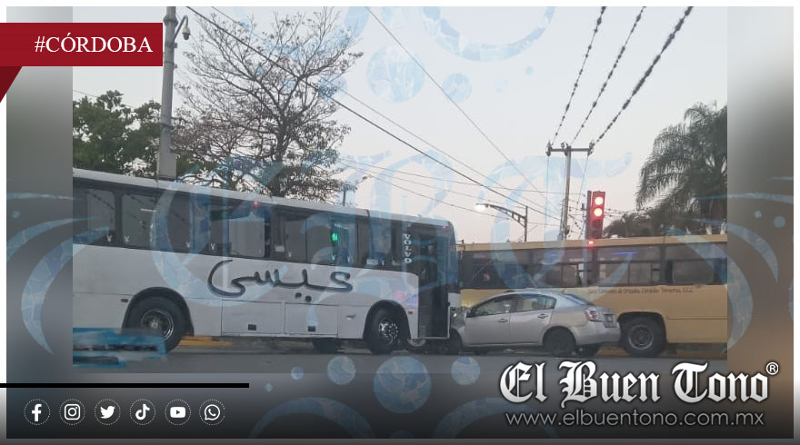 Córdoba, Ver.- La irresponsabilidad de uno de los conductores por no respetar la luz roja del semáforo, provocó que un autobús de la línea Plateados, chocara un automóvil particular, este viernes Santo por la mañana en la avenida 11 y calle 10.