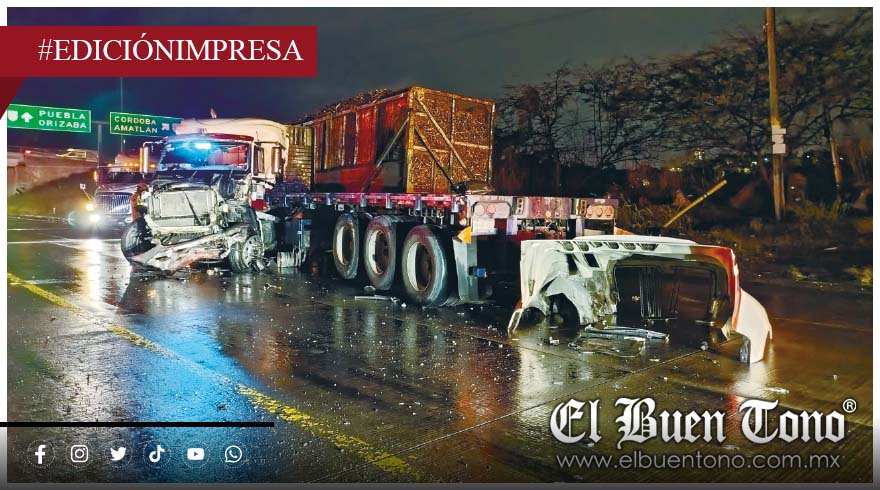 Amatlán.- Un tráiler tipo plataforma impactó a un camión que transportaba caña picada sobre la autopista Córdoba-Veracruz, a la altura del trébol de Amatlán, la noche del sábado.