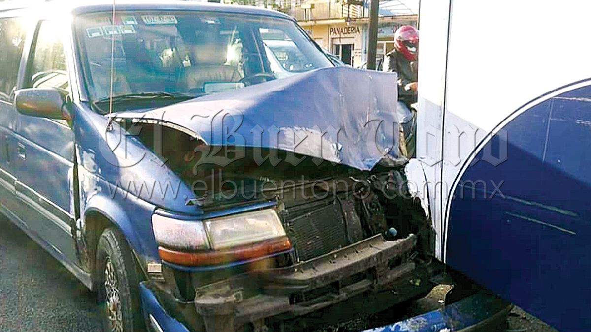 Orizaba.- Tres lesionados y cuantiosos daños materiales fue el saldo que dejó el choque por alcance entre una vagoneta marca Chrysler Town Country de color azul, placas YGZ-42-93 del estado de Veracruz y un autobús de transporte urbano de la empresa Juárez y Compañía (JYC), cuando circulaban sobre el bulevar de la Oriente 6. La movilización de los servicios médicos de Protección Civil fue inmediata y, luego de valorar a los afectados, los canalizaron a un hospital particular de la ciudad para recibieran atención médica especializada; en tanto, personal de Tránsito Municipal tomó conocimiento.