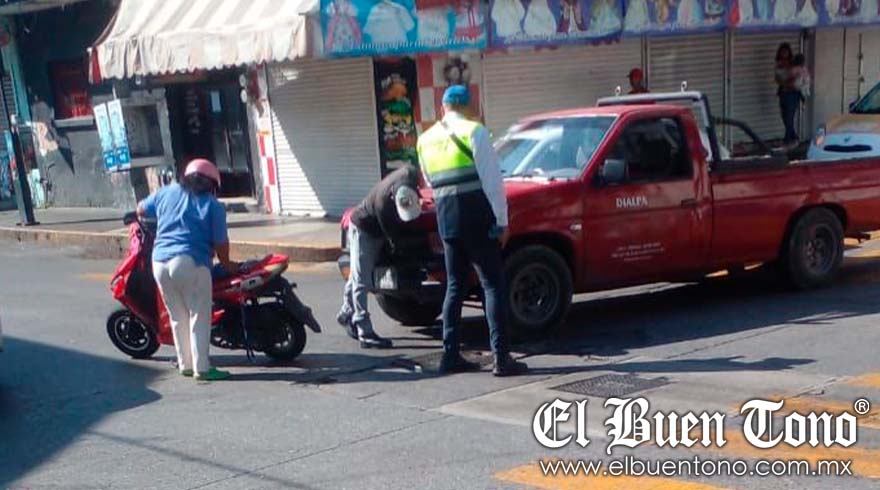Al momento, la camioneta, color vino, impacta a la motoneta que era conducida por una mujer, la que no resultó con lesiones de consideración. Del percance tomó conocimiento un perito de Tránsito Municipal que llegó para ordenar el retiro de las unidades.