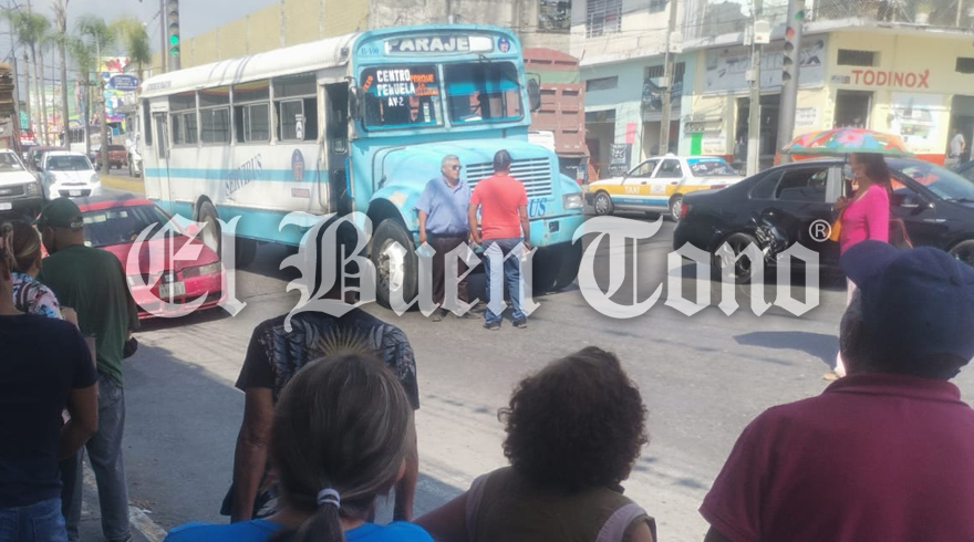 Córdoba, Ver.- Solo daños materiales y el susto para los pasajeros, dejó como saldo un choque registrado esta tarde en la avenida 1 y calle 35, entre un autobús de la ruta paraje y un vehículo particular.