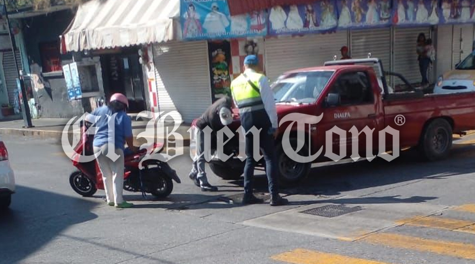 Córdoba, Ver.- Un choque registrado esta mañana en la avenida 4 y calle 13, entre una camioneta y una motoneta, dejó sólo daños materiales y el cierre momentáneo de la circulación.