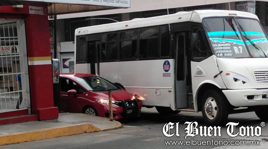 Córdoba, Ver.- Un autobús de la línea Servicios Turísticos de Veracruz, chocó a un vehículo particular esta tarde de lunes en la avenida 5 y calle 11. El accidente se registró al momento en que el conductor del autobús salía de la calle hacia la avenida sin tomar las debidas precauciones. Un perito de tránsito municipal toma conocimiento para realizar el deslinde de responsabilidades.