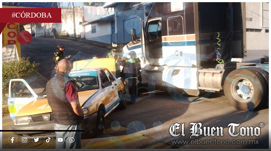Córdoba, Ver.- Un choque registrado durante la mañana de este miércoles en la avenida 9 bis y calle 16 del fraccionamiento San José, entre un taxi y un tractocamion de la empresa Carus Abella, dejó sólo daños materiales.
