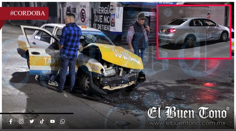 Córdoba, Ver.- Un choque registrado durante la madrugada de este domingo en la avenida 3 y calle 17, entre el taxi CO-2659 y un vehículo marca Volkswagen tipo Jetta, solo dejó daños materiales de consideración.