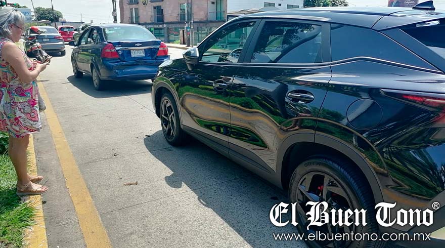 Antes de llegar, el auto azul fue impactado en su parte trasera por un automóvil de color negro, con placas de circulación YPP-866-A, del que su conductor no respetó la preferencia de paso vehicular.