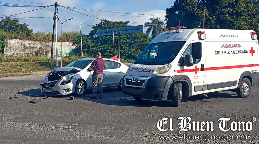 Amatlán.- Un conductor fue asistido por paramédicos de la Cruz Roja después de chocar su automóvil por alcance contra una camioneta, justo en la desviación a Potrero Nuevo.