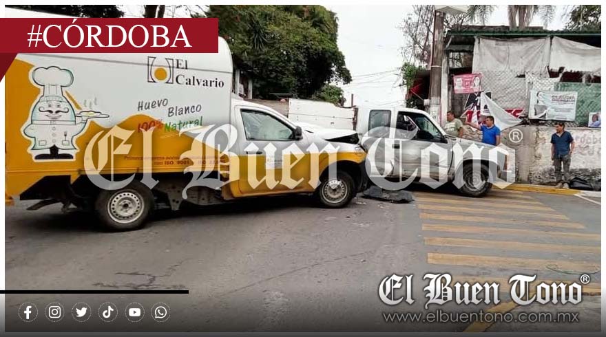 Córdoba.- Una mujer resultó lesionada, luego de que la camioneta en la que viajaba se pasó la preferencia vial en el cruce de la calle 6 y avenida 18 de la colonia México y fue impactada por otra camioneta que transportaba conos con huevos.