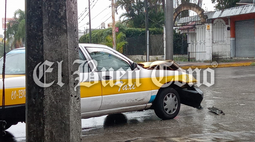 Córdoba, Ver.- Un choque se registró esta mañana en la avenida 11 y calle 10, debido a la falta de precaución por parte de uno de los conductores y el piso mojado por la la lluvia, dejó una persona lesionada, la que fue atendida por paramédicos de la Cruz Roja.