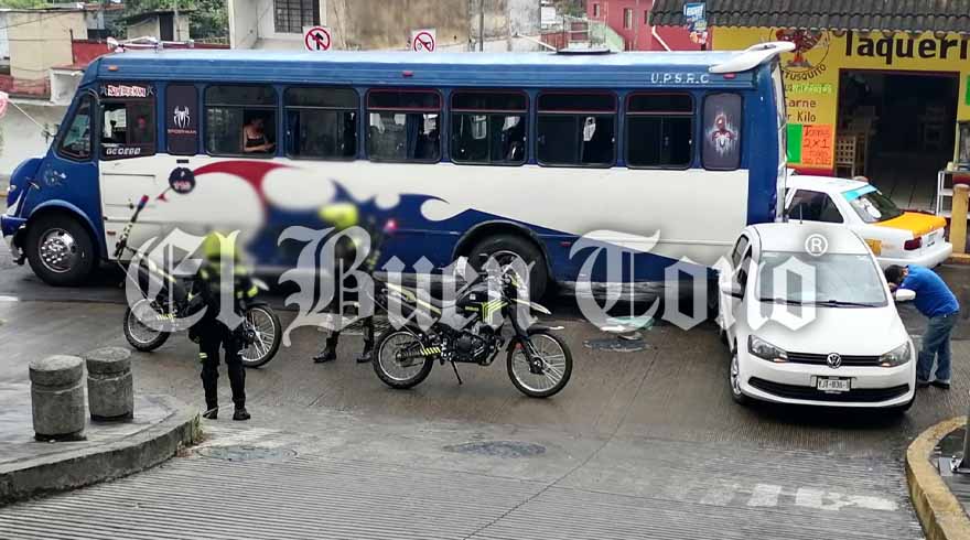 Córdoba. – Un automóvil que era tripulado por dos mujeres, quedó estrellado contra un autobús que se dirigía a El Porvenir, luego de que el vehículo se fuera de reversa en una subida de la calle 1 y avenida 6, en el centro de Córdoba.