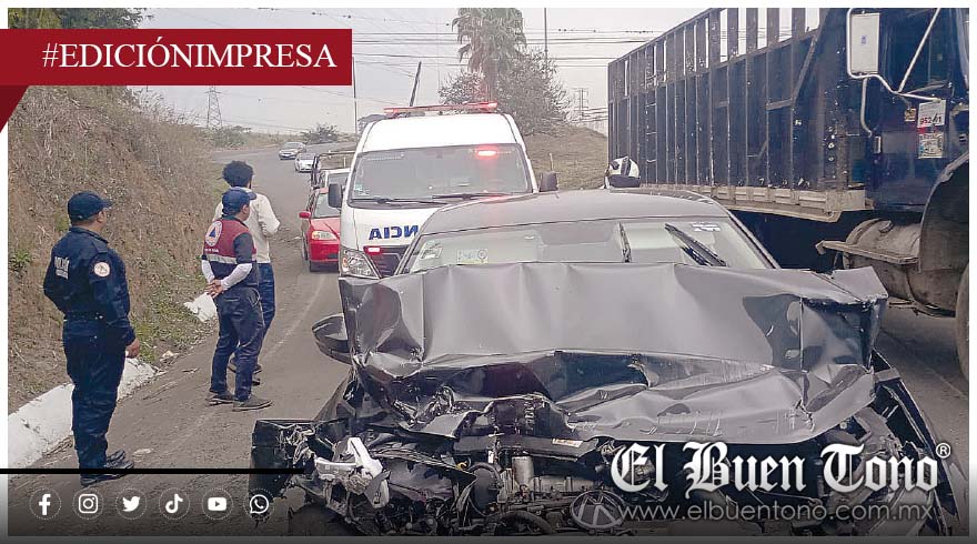 Amatlán.- Dos personas resultaron lesionadas en una colisión entre un automóvil y una camioneta de carga, ocurrida la tarde de ayer en el libramiento de la autopista a la altura del kilómetro 297, en el trébol de Amatlán.