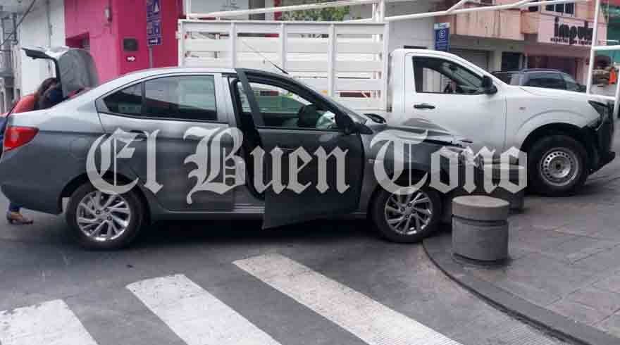 Córdoba.- La imprudencia por no respetar la luz roja del semáforo, provocó que los conductores de una camioneta de redilas y un vehículo Chevrolet, se impactaran y quedaran atravesados en el cruce de la avenida 1 y calle 6 en la colonia Centro.