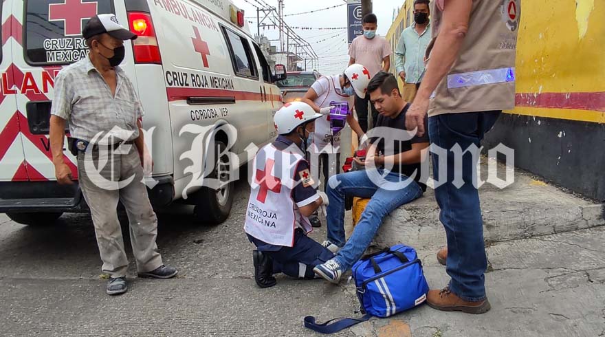 Córdoba.- Un joven con lesiones menores y daños materiales, fue lo que dejó una colisión entre una motocicleta y una camioneta la tarde de este viernes, en el cruce de la avenida 5 y calle 15. El percance se registró cuándo el joven circulaba a bordo de una motoneta de la marca Italika, esto sobre la avenida 5, donde el conductor de una camioneta Nissan Frontier no hizo alto, por lo que provocó que se impactara el joven para que posteriormente quedara tirado en el pavimento. Al lugar arribaron paramédicos de Cruz Roja, quienes le brindaron las primeras atenciones y lo trasladaron a un hospital para su pronta atención médica. Del percance tomó conocimiento el perito en turno de Tránsito municipal.