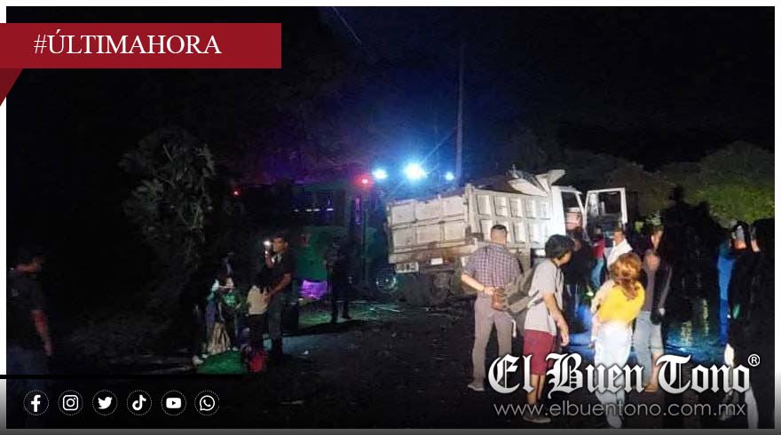 Xalapa, Ver.- La noche de este miércoles se registró un fuerte accidente en la carretera Xalapa–Totutla, en el tramo entre Tuzamapan y la entrada a Jalcomulco, cuando un autobús de la línea Azteca colisionó contra un camión de volteo.