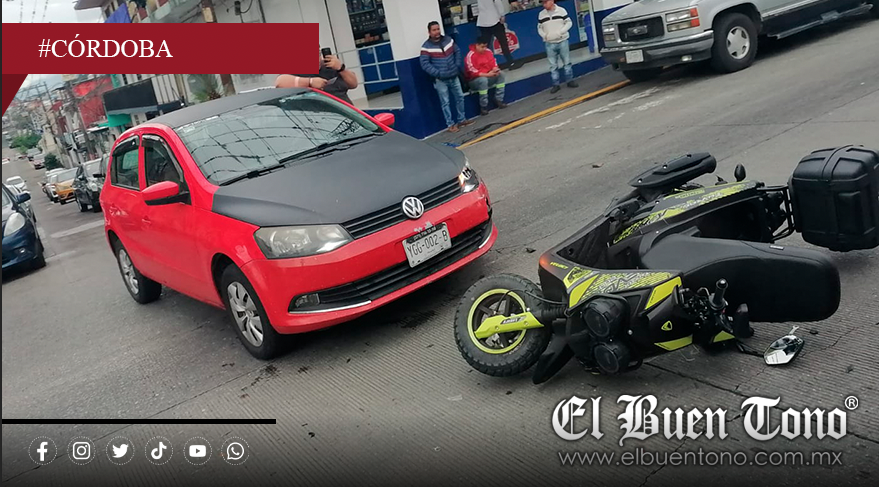Córdoba, Ver.- Un choque entre un automóvil Volkswagen y una motoneta registrado la mañana de este viernes en el cruce de la avenida 11 y calle 2 dejó únicamente daños materiales y ocasionó el cierre momentáneo de la circulación en la zona.