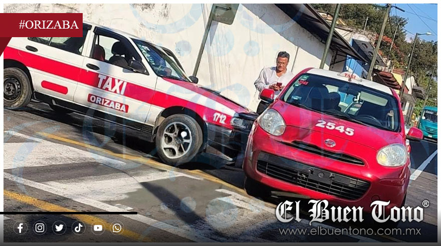 Orizaba, Ver.- La mañana de este miércoles se registró un accidente vial entre dos unidades del servicio de transporte público en su modalidad de taxi, sobre la intersección de Sur 10 y Poniente 5, en el centro de la ciudad de Orizaba.