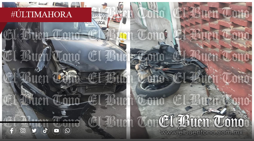 Orizaba, Ver.— Un fuerte accidente vial se registró la tarde de este domingo en calles de la colonia Lourdes, en el municipio de Orizaba, luego de que una motocicleta deportiva se impactara de frente contra un automóvil particular, dejando como saldo a un joven motociclista gravemente lesionado, además de cuantiosos daños materiales.