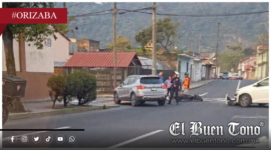 Orizaba, Ver.- Un motociclista resultó lesionado la mañana de este martes luego de impactarse contra un automóvil a unos metros de la curva de la avenida Cri-Crí, en las inmediaciones de la zona donde se ubica el hipopótamo Tyson.