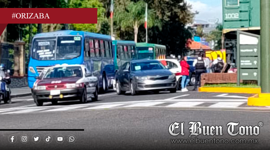 Orizaba, Ver. — La tarde de este lunes se registró un accidente vial entre un taxi y un automóvil particular en una de las vialidades más transitadas de la ciudad. El percance ocurrió sobre la calle Oriente 6, esquina con Sur 33, en el carril de bajada.