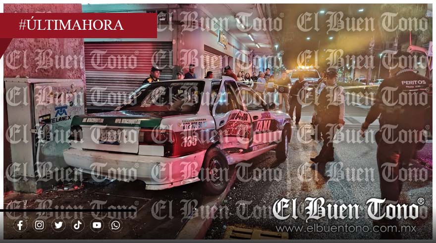 Orizaba, Ver.– La noche de este jueves se registró un accidente vial en la esquina de Sur 4 y Poniente 7, en pleno centro de Orizaba, donde dos unidades de transporte público tipo taxi protagonizaron un fuerte choque.