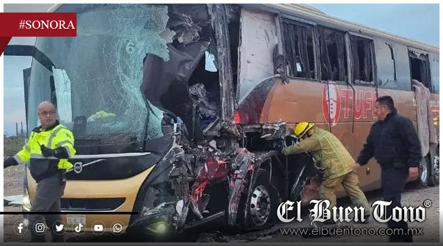 Sonora.- Un trágico accidente carretero registrado la madrugada de este viernes 13 de febrero dejó un saldo de cinco personas fallecidas y al menos 25 lesionadas, tras un choque entre un tractocamión y un autobús de pasajeros en la carretera que comunica a Sonoyta con Caborca, en el estado de Sonora.