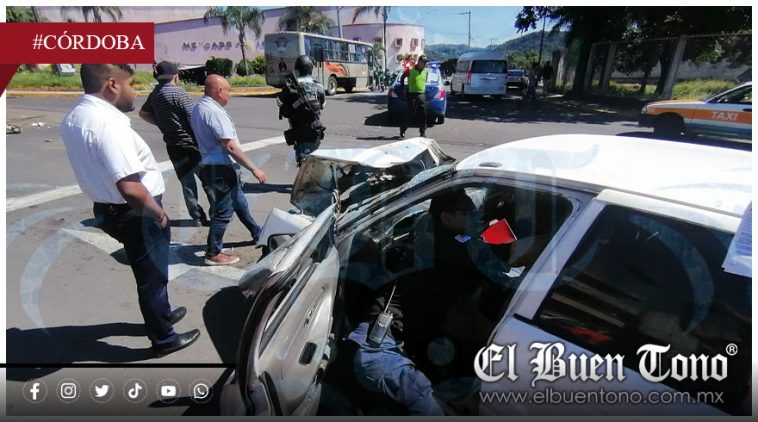 Córdoba, Ver.- Un choque registrado la mañana de este viernes sobre el bulevar Agustín Millán, frente al mercado de abastos la Isla, entre un autobús de pasaje Calería y un vehículo Nissan Tsuru, dejó una persona lesionada y daños materiales.