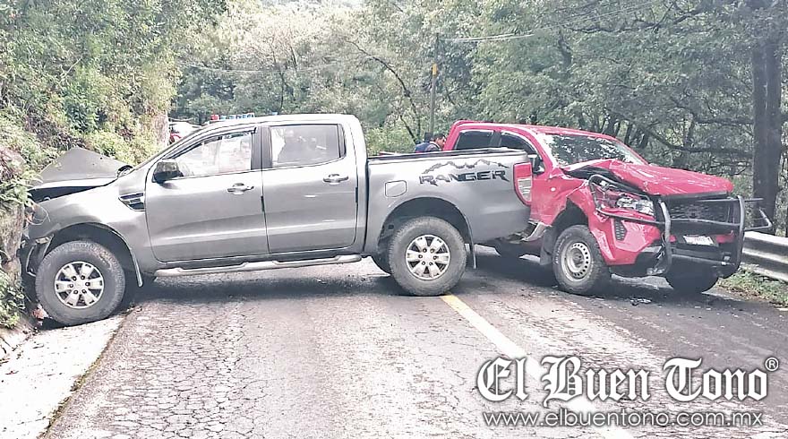 El percance ocurrió entre los municipios de San Andrés Tenejapan y Tequila, cuando dos camionetas de doble cabina con batea, una roja y otra gris, chocaron de frente debido a la velocidad inmoderada y la falta de precaución.