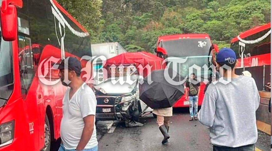 Nogales, Veracruz – Un accidente múltiple se reportó en la autopista Orizaba-Esperanza, específicamente en la conocida curva de los Marranos, del municipio de Nogales. El incidente involucró a dos autobuses ADO y una camioneta. Afortunadamente, no se reportaron lesionados, pero el tráfico se encuentra detenido en la zona.