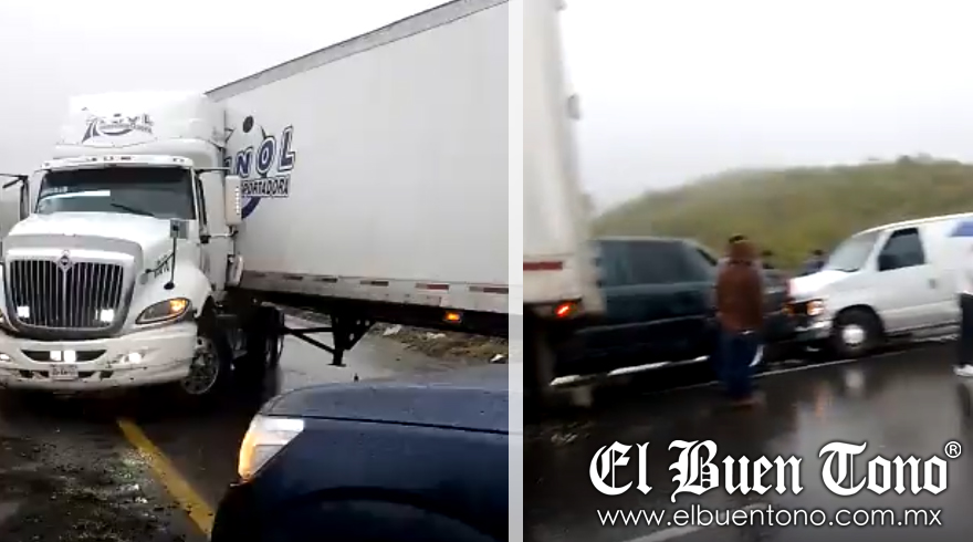 Maltrata.- Debido a la llovizna y a la nula visibilidad, el conductor de un tractocamión perdió el control de éste, por lo que derrapó y quedó atravesado sobre la autopista Puebla-Córdoba, en la entrada al municipio de Maltrata, ocasionando el choque por alcance de otras dos camionetas.