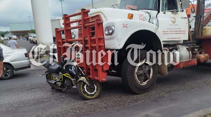 Córdoba.- Un motociclista se salvó de resultar lesionado al ser impactado por una grúa cuando se incorporó sin precaución al bulevar Córdoba-Peñuela, a la altura de Soriana.