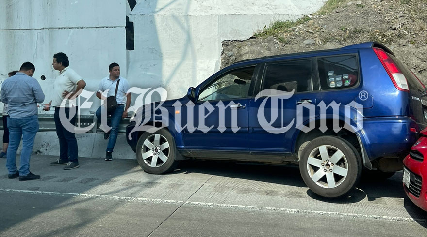 Cuitláhuac, Ver.-Un choque que dejó daños materiales mínimos y la falta de abanderamiento adecuado por parte personal de Capufe y Guardía Nacional, provocaron ayer largas filas de vehículos, en la autopista Córdoba -Veracruz.