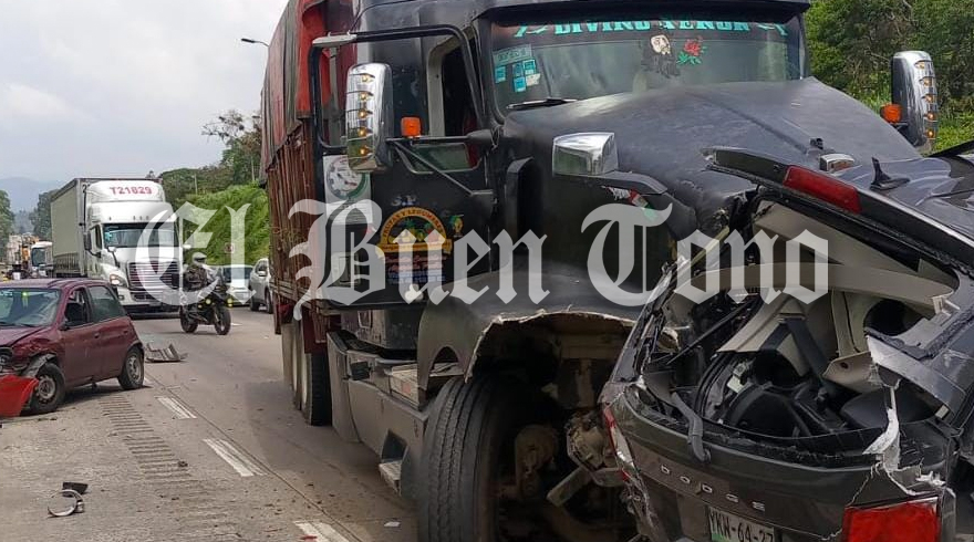 Ixtaczoquitlán.- Un camión tipo torton que iba cargado con varias toneladas de verdura, embistió a dos automóviles cuando circulaba sobre la autopista Puebla-Córdoba, kilómetros antes de llegar a la caseta de cobro de Fortín de las Flores.