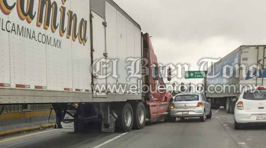 FORTIN. Un vehículo particular resultó dañado tras ser embestido por un tráiler cuando circulaban sobre la autopista Córdoba-Orizaba, precisamente en el tramo de la caseta de Fortín, debido a ello Guardia Nacional división Caminos implementa el correspondiente protocolo de seguridad para agilizar tráfico que se ha formado sobre todo en este fin de semana.