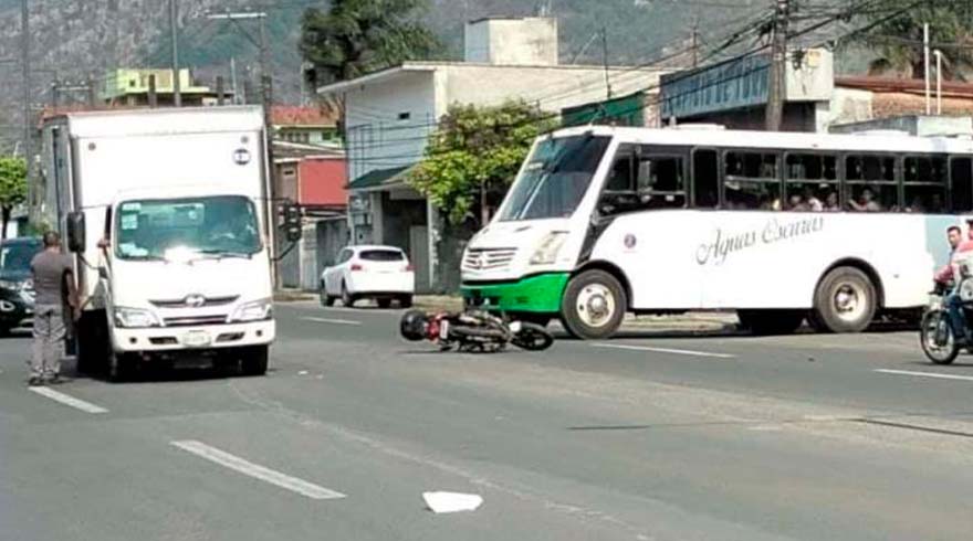 RÍO BLANCO.- Una persona del sexo masculino con golpes, daños materiales y movilización de cuerpos de rescate, ha sido el saldo de un accidente entre una motocicleta y un camión de carga sobre la avenida Camino Nacional, a la altura de la colonia Agraria, del municipio de Río Blanco.