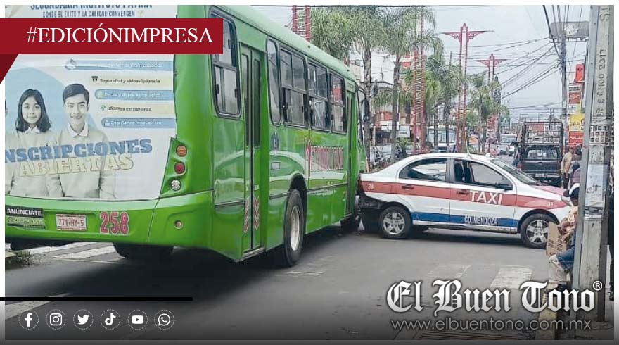 El accidente involucró a un autobús, un taxi local con número 38 y un automóvil particular, lo que movilizó a las autoridades de tránsito estatales y cuerpos de emergencia de la ciudad.