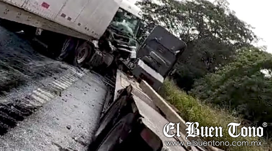 Cosamaloapan, Ver.- Un choque con volcadura, entre dos tráileres, uno de ellos cargado con leche, se registró la mañana de este viernes en la autopista Tinaja Cosamaloapan a la altura del kilómetro 121 con dirección al sur.