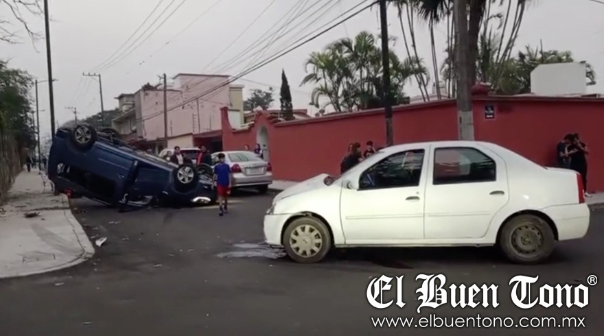 Orizaba. – Cinco personas resultaron lesionadas, entre ellas dos niños, tras el choque y volcadura entre un vehículo y una camioneta que no respetaron el 1×1, ocurrido en la colonia Barrio Nuevo.