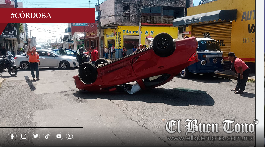 Córdoba, Ver.- Un aparatoso accidente vial ocurrido la mañana de este lunes en la intersección de la avenida 5 y calle 15 dejó como saldo dos personas lesionadas y daños materiales de gran magnitud, luego de que un vehículo Mitsubishi volcara tras ser impactado por un Chevrolet Cruze.