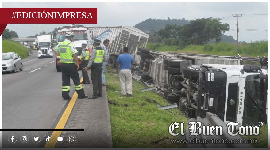 Córdoba.- Un choque con volcadura registrado la tarde del domingo en la autopista Córdoba-Orizaba dejó a