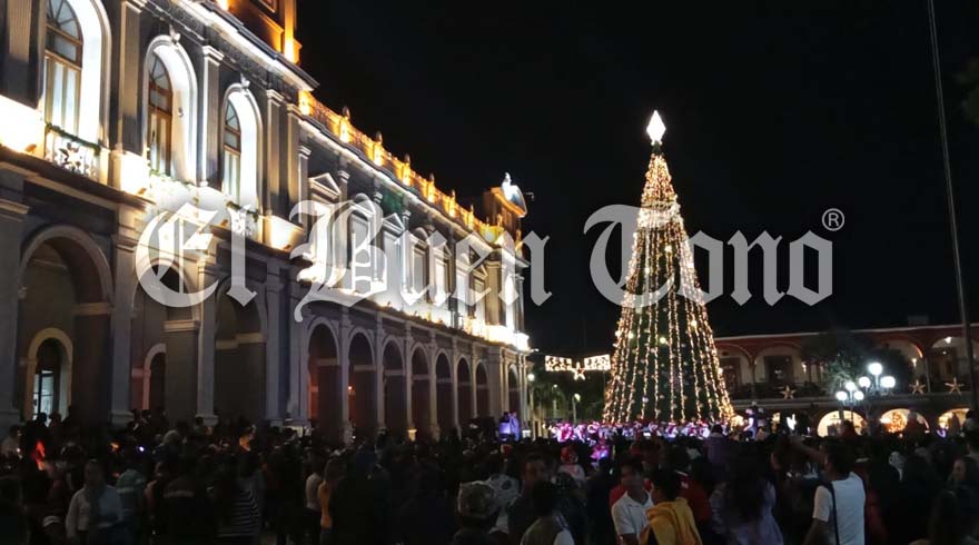 Córdoba, Ver.- La noche de hoy se vivió una atmósfera mágica en el parque 21 de Mayo, donde cientos de familias se congregaron para presenciar el encendido del pino navideño.