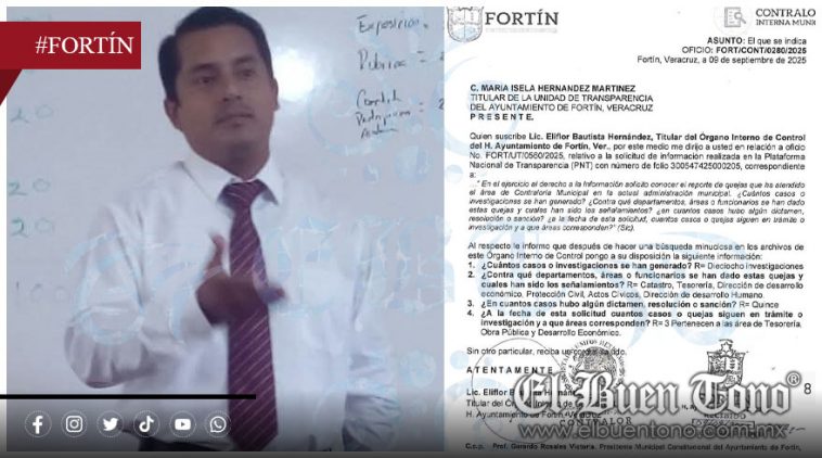 Fortín, Ver.- La Contraloría Municipal del Ayuntamiento de Fortín ha admitido la existencia de dieciocho investigaciones por quejas durante esta gestión, de las cuales solo quince han sido resueltas y tres permanecen en la opacidad, pendientes de dictamen.