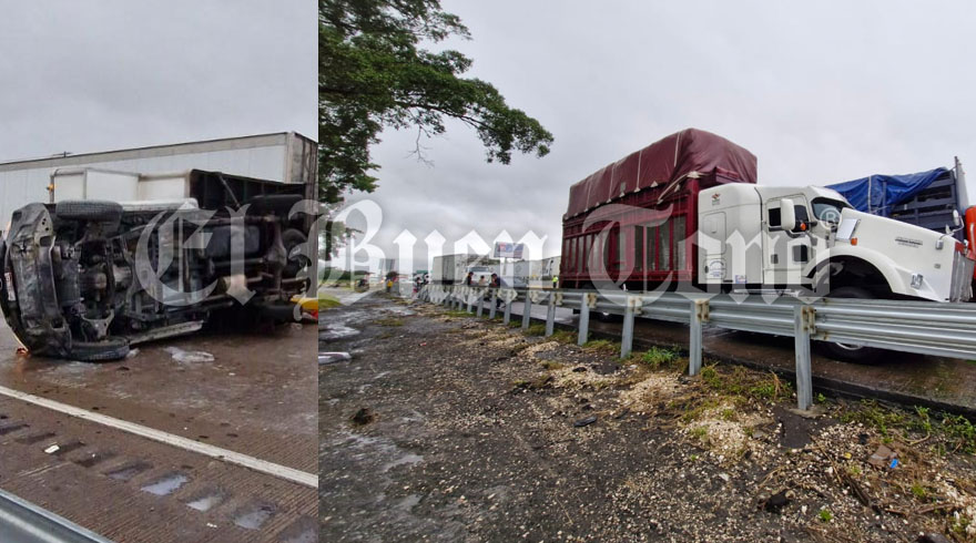 Una camioneta que transportaba abarrotes, volcó al evitar chocar de frente con el automóvil y a su vez fue impactado por un tráiler y un cuarto vehículo se vio involucrado.