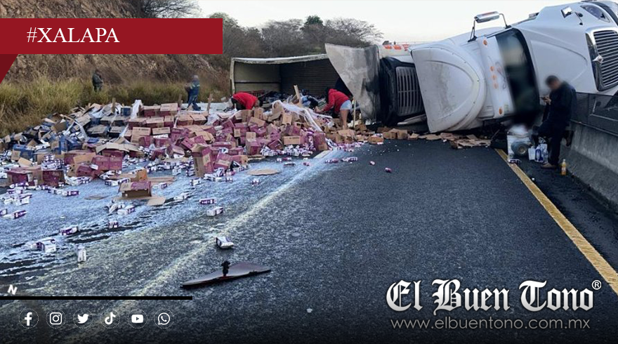 Xalapa, Ver.- La mañana de este jueves, un tráiler que transportaba leche volcó en el kilómetro 20+800 de la carretera Xalapa-Veracruz, en dirección a la capital del estado, provocando el cierre total de la circulación.