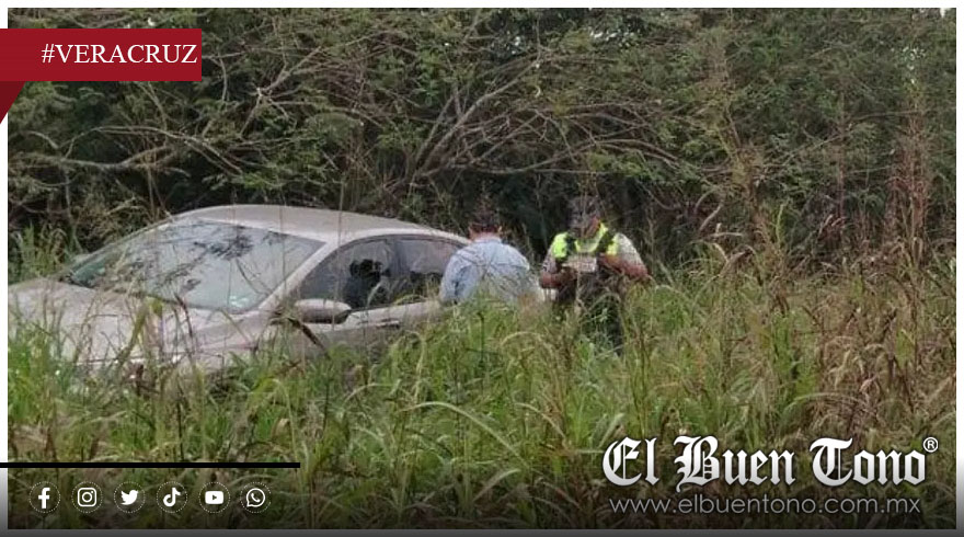 Un vehículo siniestrado se encuentra sobre la maleza y es resguardado por elementos de la Guardia Nacional, mientras se realizan las labores de atención y remoción del automotor.