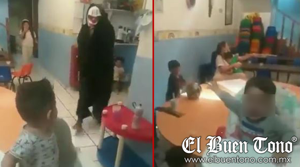 Jalisco.- En las redes sociales fue difundido un video en el que se muestra a una persona con una túnica color negro y una máscara con la que asusta a unos pequeños de la guardería “La Casa de los Peques”, la cual está ubicada en el estado de Jalisco.