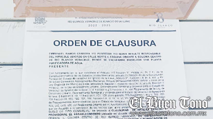 Río Blanco.- Los habitantes del municipio expresaron su indignación, rechazo y preocupación, luego de que las autoridades locales clausuraron la operación de una planta purificadora de agua en esta temporada de altas temperaturas.